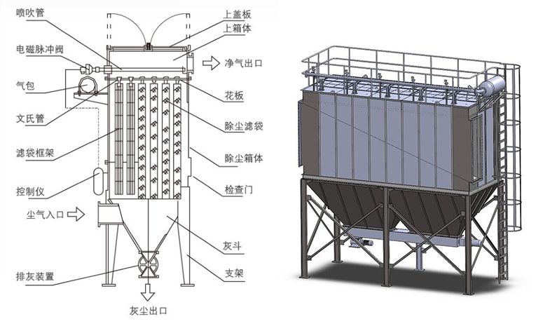 布袋工藝與清灰狀態(tài)示意圖