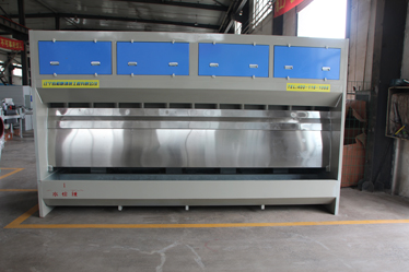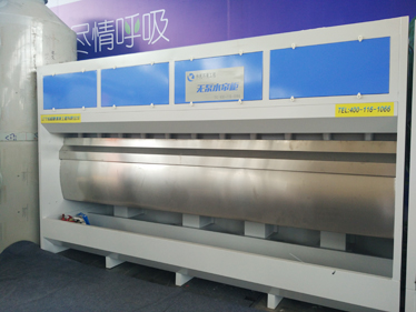 無泵水簾柜借助風(fēng)力作用提水形成水簾,無需水泵提水。避免了因水泵和管道堵塞、損壞引起的故障,大大提高了固體漆霧顆粒的凈除效果。其漆霧處理方法科學(xué)有效,是一種技術(shù)較為先進(jìn)的漆霧處理設(shè)備。